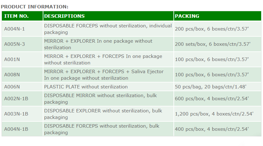 All our dental instruments such as Disposable Mirrors, Forceps, Explorers, Plastic Plates and Saliva Ejectors are made in Taiwan. Should you have any question, please feel free to contact us. Fill the Contact Form and send your message. Or, write to us: