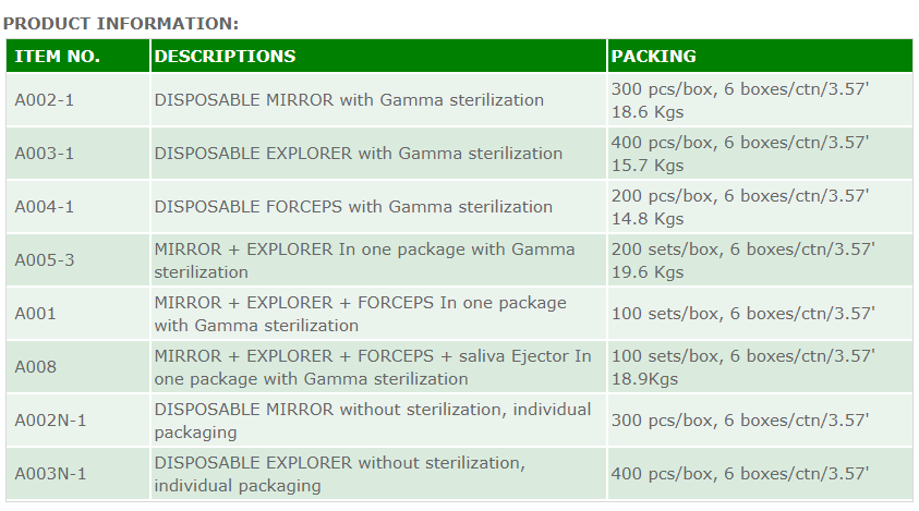 All our dental instruments such as Disposable Mirrors, Forceps, Explorers, Plastic Plates and Saliva Ejectors are made in Taiwan. Should you have any question, please feel free to contact us. Fill the Contact Form and send your message. Or, write to us: