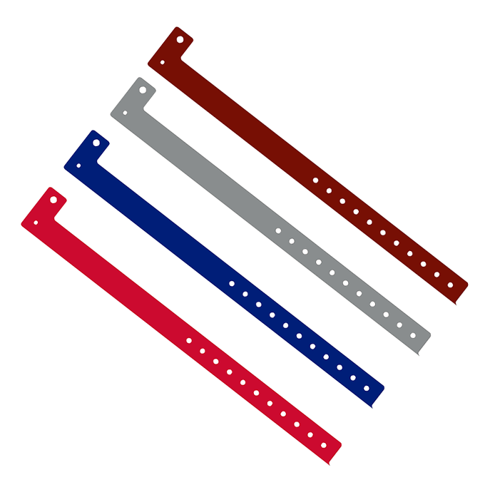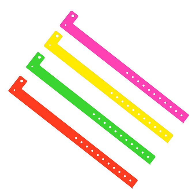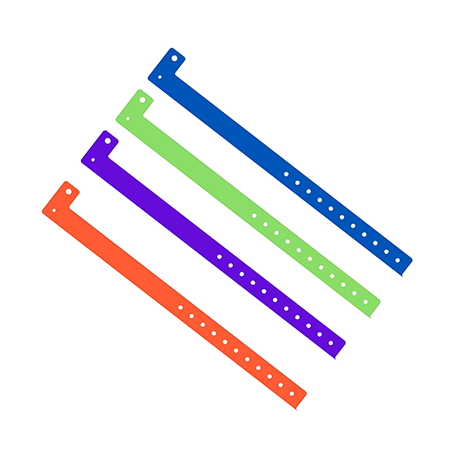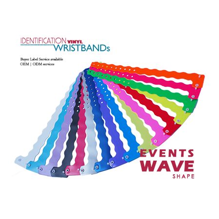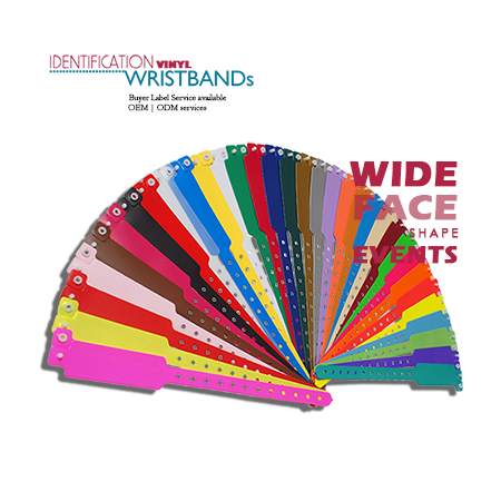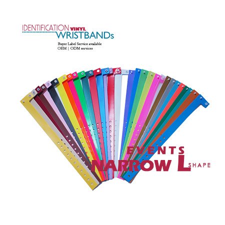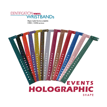Another popular ID vinyl wristband solution we offer is ID Wristbands for event issues. Our vinyl selection offers the styles from wide vinyl, wavy edge vinyl, and traditional L style, narrow L style on bands. We have over 33 colors on these wristbands and 13 colors on holographic vinyl wristbands. All of our wristbands are made in Taiwan.