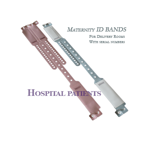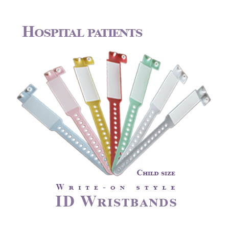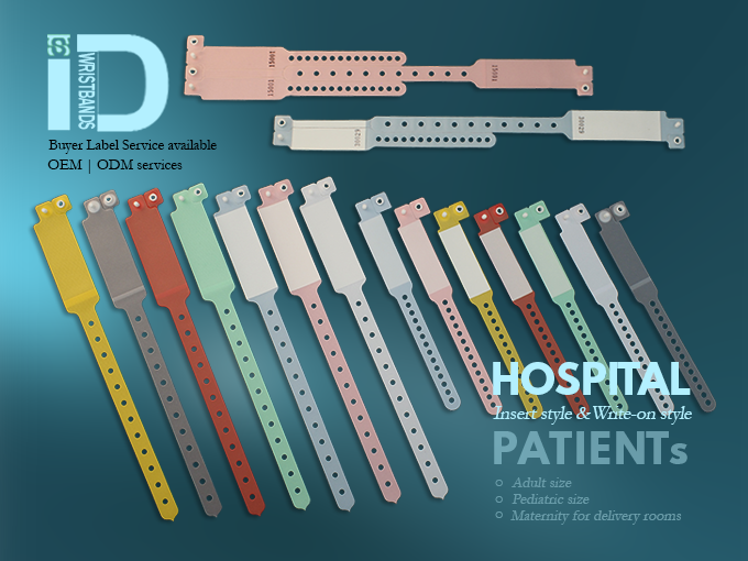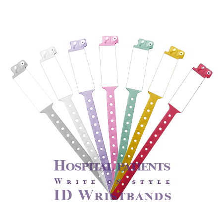 There are two sizes and two styles for our vinyl wristbands | vinyl bracelets for hospital patients. The sizes for these vinyl bands are pediatric and adult, and Insert style and write-on style are offered for the hospital patient wristbands. We have 7 colors available for your choice on these bands. In addition, we also manufacture Maternity ID Wristbands | Bracelets for the use in delivery rooms.